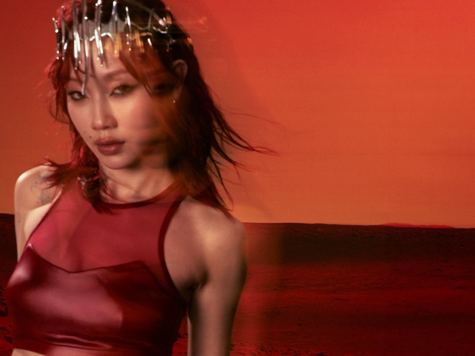 暫無庫存「尚未開賣」獵戶座透紗拼接上身-紅