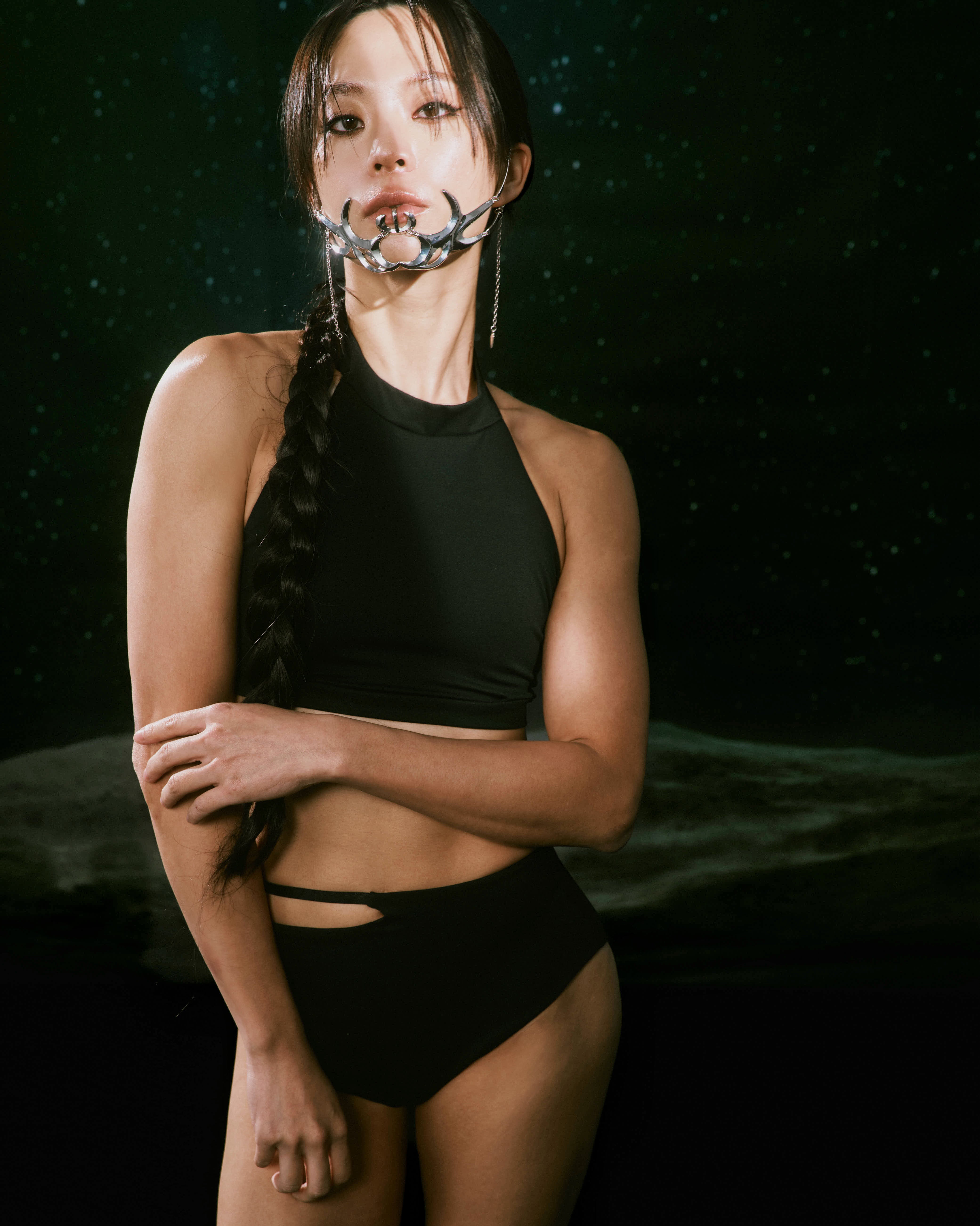 • 背後搭配 雙條彈性帶,可依需求調整鬆緊,兼具穩定性與造型感