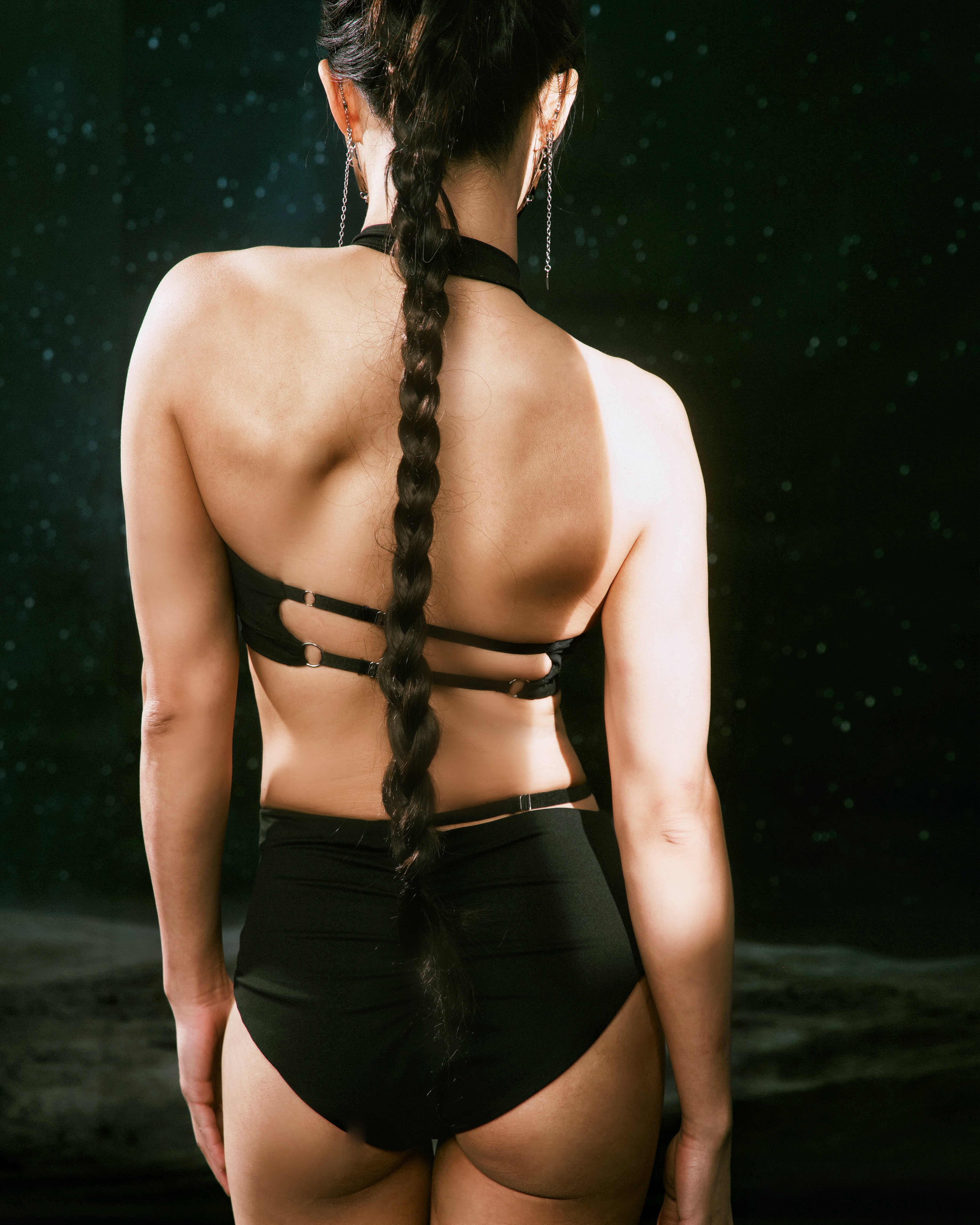 • 繞脖削肩設計,完美勾勒鋼管人的肩膀線條;大面積露背,展現背肌力量與曲線