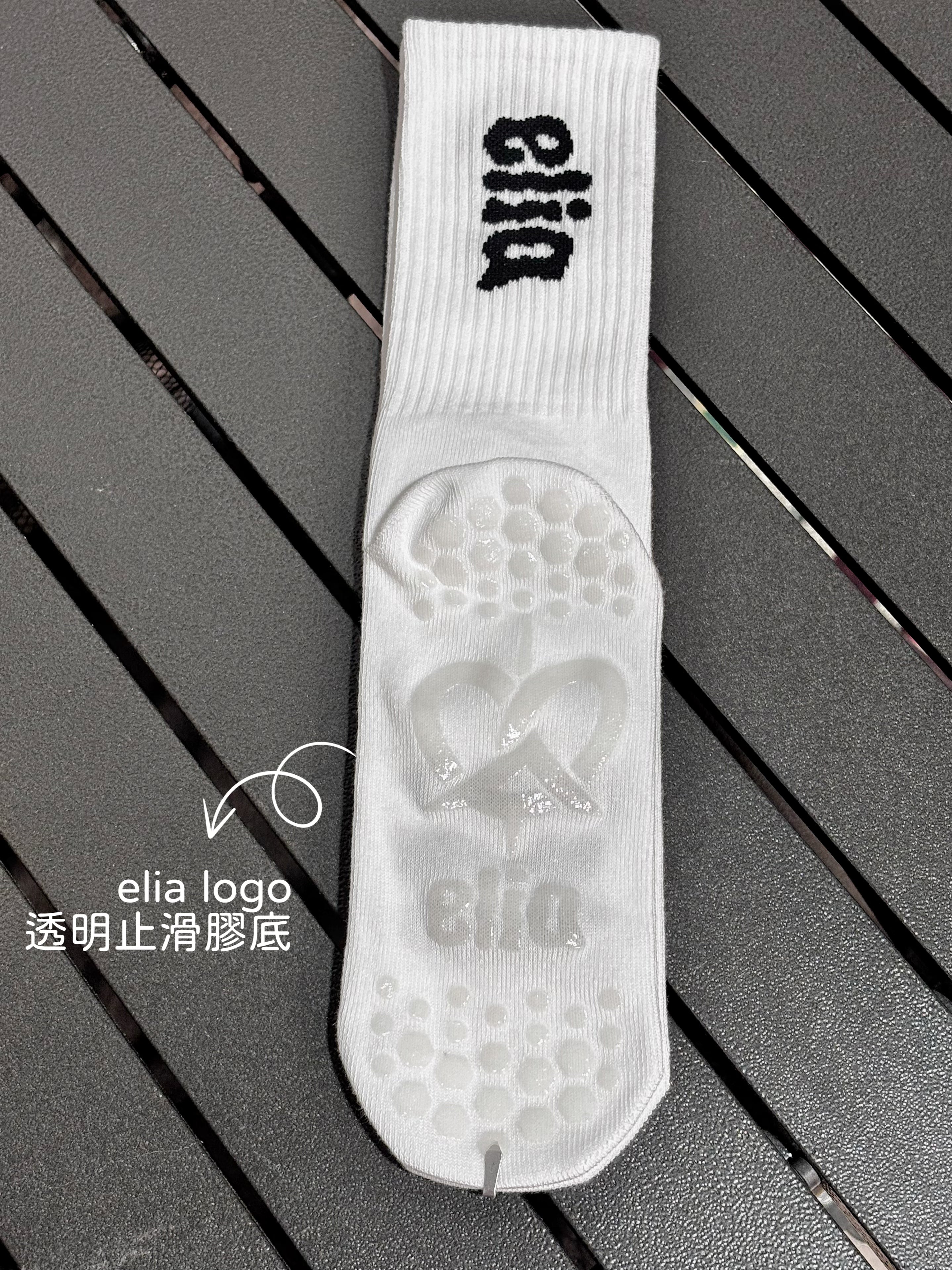 中筒設計好穿好搭;底部則是elia logo止滑膠底,讓妳抓地力十足!